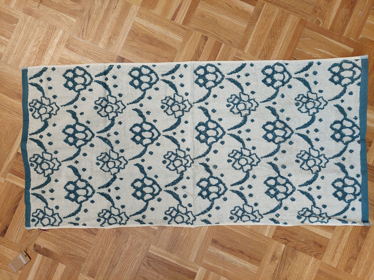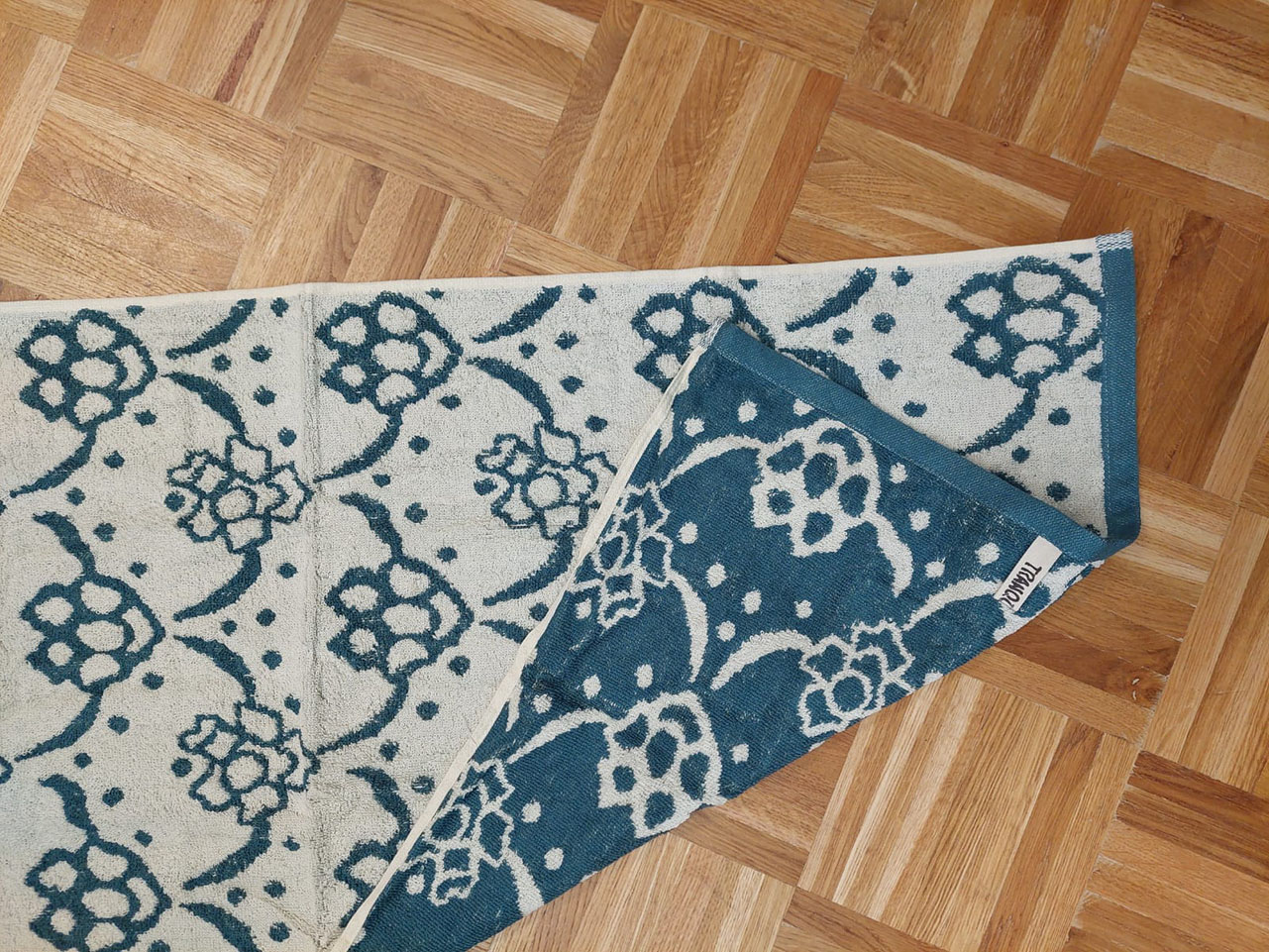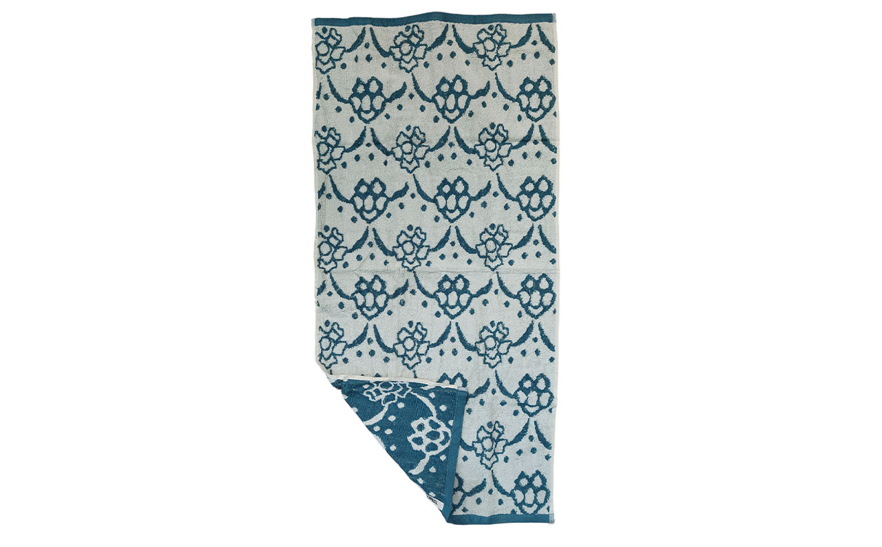Over de maker van de handdoek met patroon blauw wit