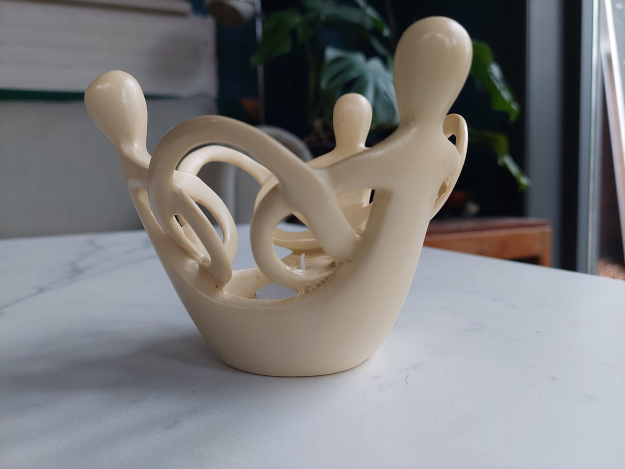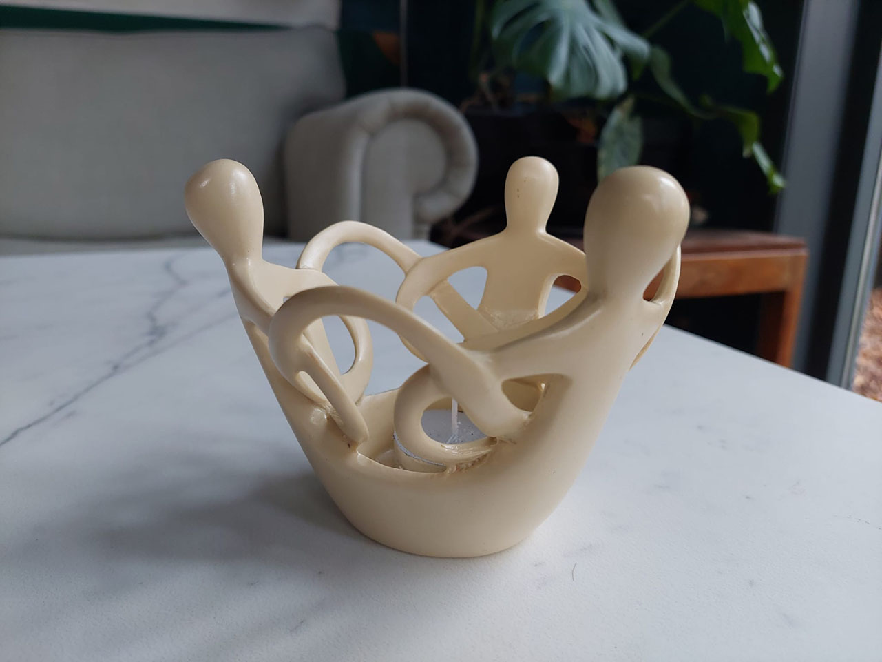 Het familiebeeld met waxinelichtjeshouder is handgemaakt onder fair trade omstandigheden door het familiebedrijf Sawahasa. De ambachtslieden van Sawahasa zijn kleine familiebedrijven in Thailand, India en Palestina. Ze krijgen een eerlijk loon en werken onder fijne omstandigheden. Door de directe samenwerking met deze kleine bedrijven wordt de economische ontwikkeling gestimuleerd. Vooral in minder bevoorrechte regio’s.