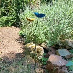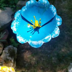 Over de maker van de tuinsteker grafdecoratie blauwe bloem