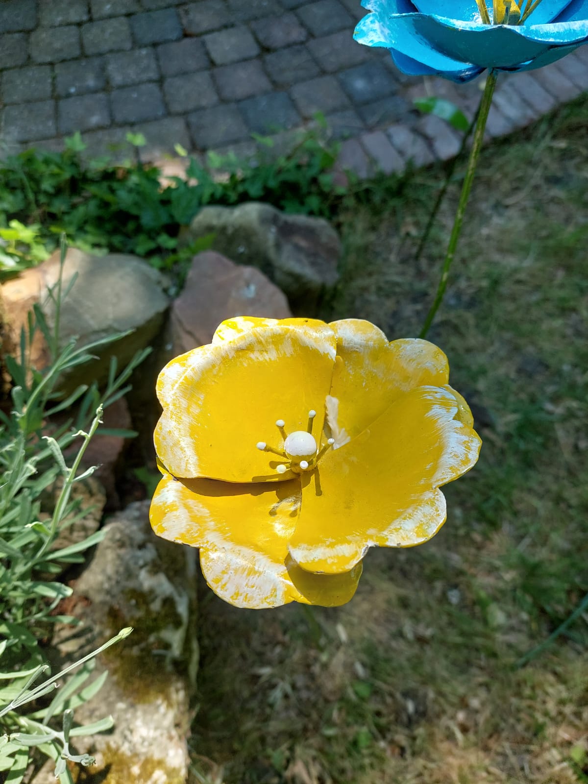 Over de maker van de tuinsteker grafdecoratie gele bloem