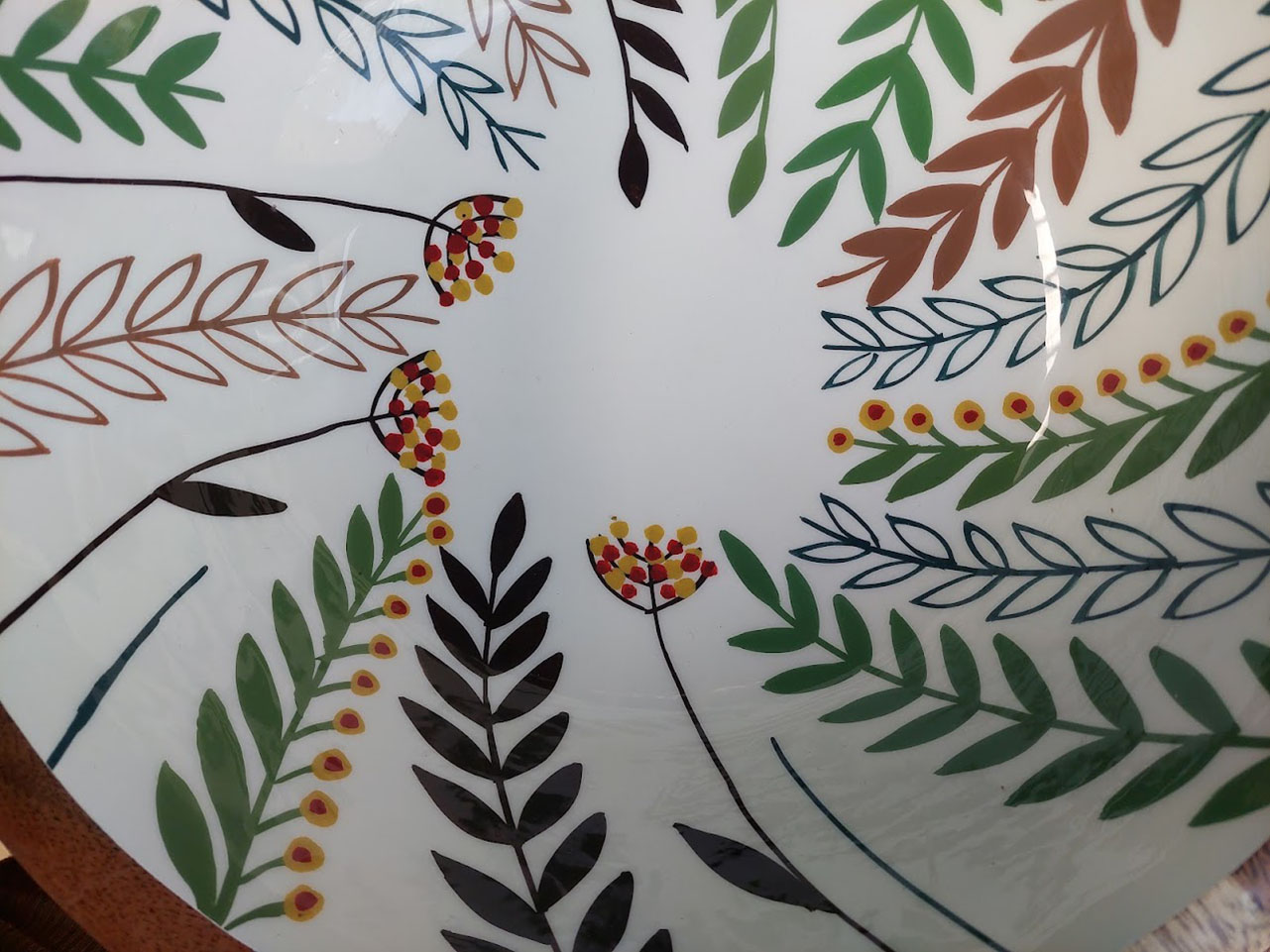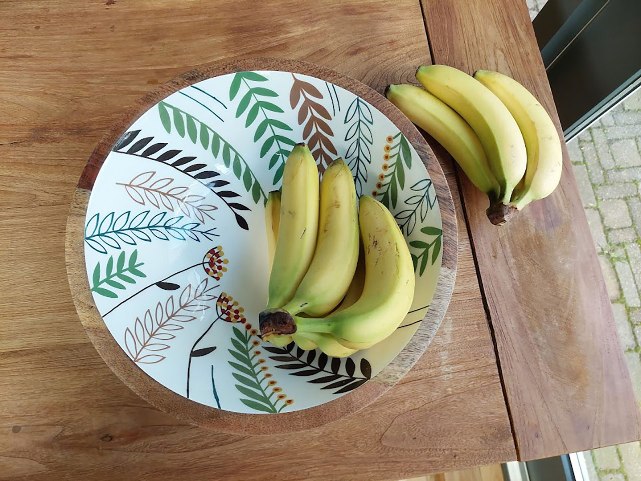 Over het materiaal van de houten schaal met print aardetinten
