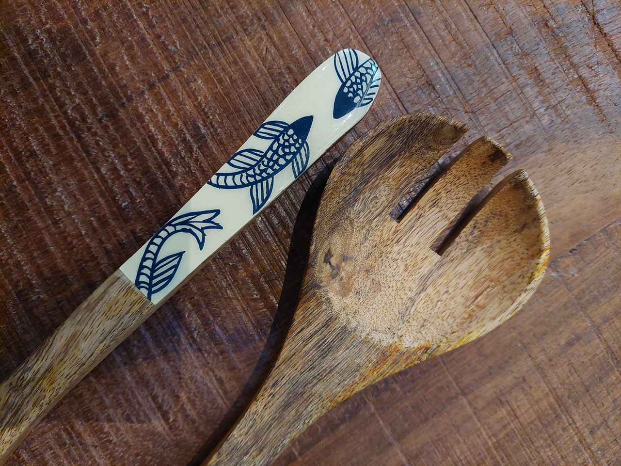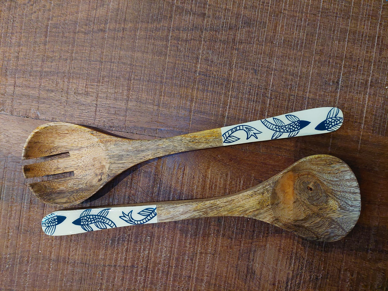 Deze slaset is gemaakt in India. India, een land met zoveel gezichten. Met dit bestek laten we de kundigheid zien van de houtbewerkers en tekenaars. Mensen die plezier hebben in hun werk. En daar een eerlijk loon voor ontvangen. Een loon waarmee ze hun gezin van kunnen onderhouden. Niet alleen met de eerste levensbehoeften zoals eten en een dak boven je hooft. Maar ook genoeg voor scholing, gezondheidszorg en ontspanning.