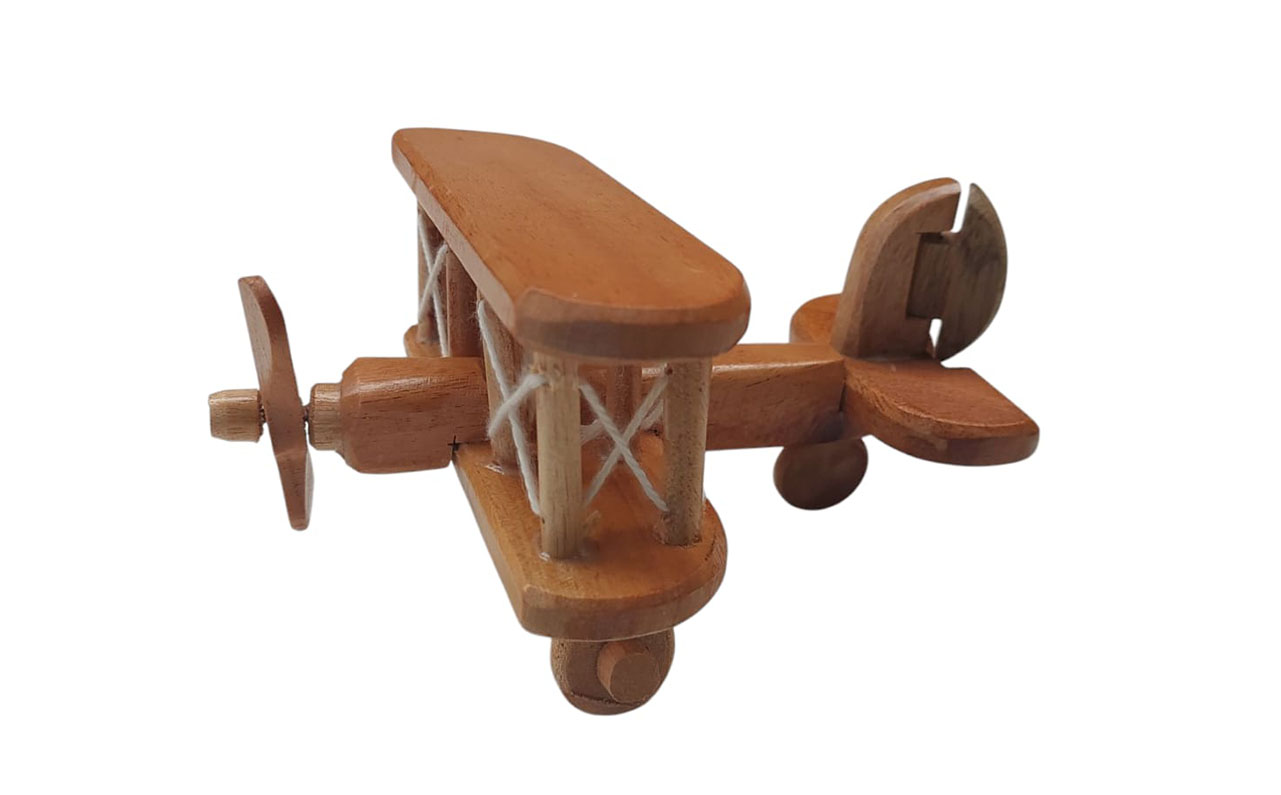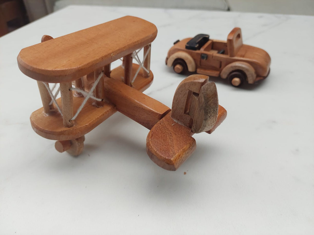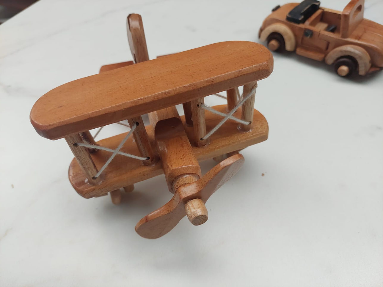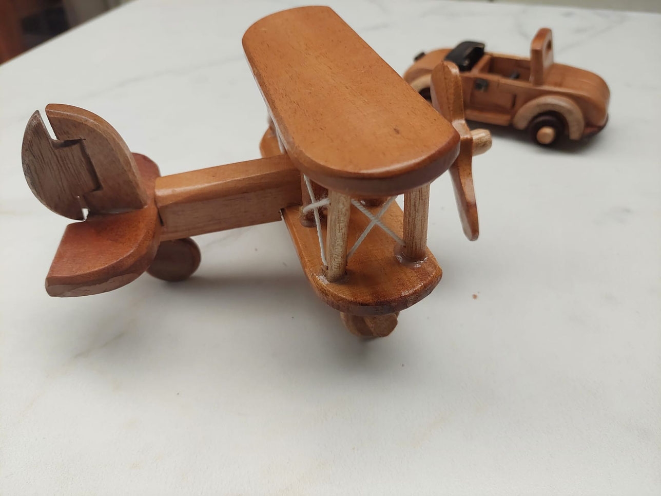 Deze houten vliegtuig wil elke baby wel op zijn kamer! Je ziet dat het vliegtuig met de hand is gemaakt en dat zie je dat er aandacht is besteed aan de details. De wielen kunnen echt draaien en de staartvleugel en propeller scharnieren door houten pennetjes.