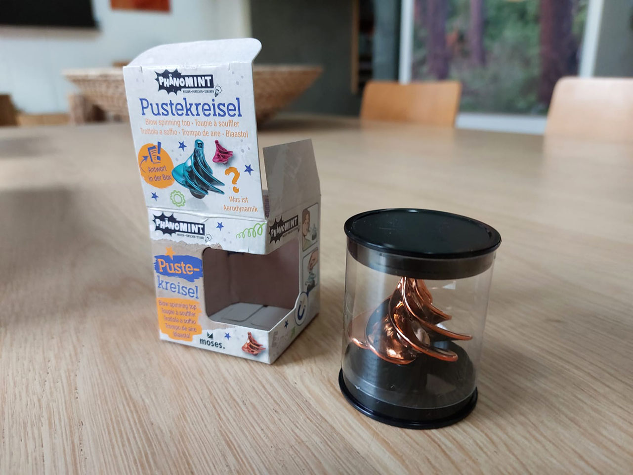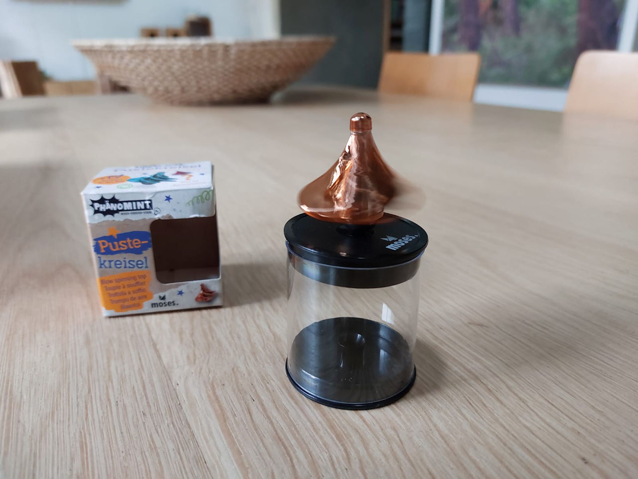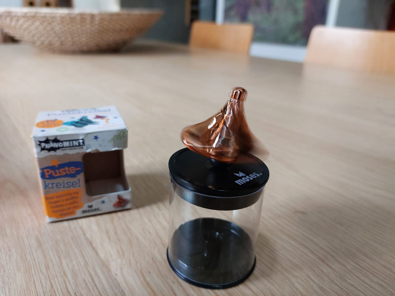 Leg de tol neer op de tafel en blaas er vanaf de bovenkant op. Kijk wat er gebeurd!