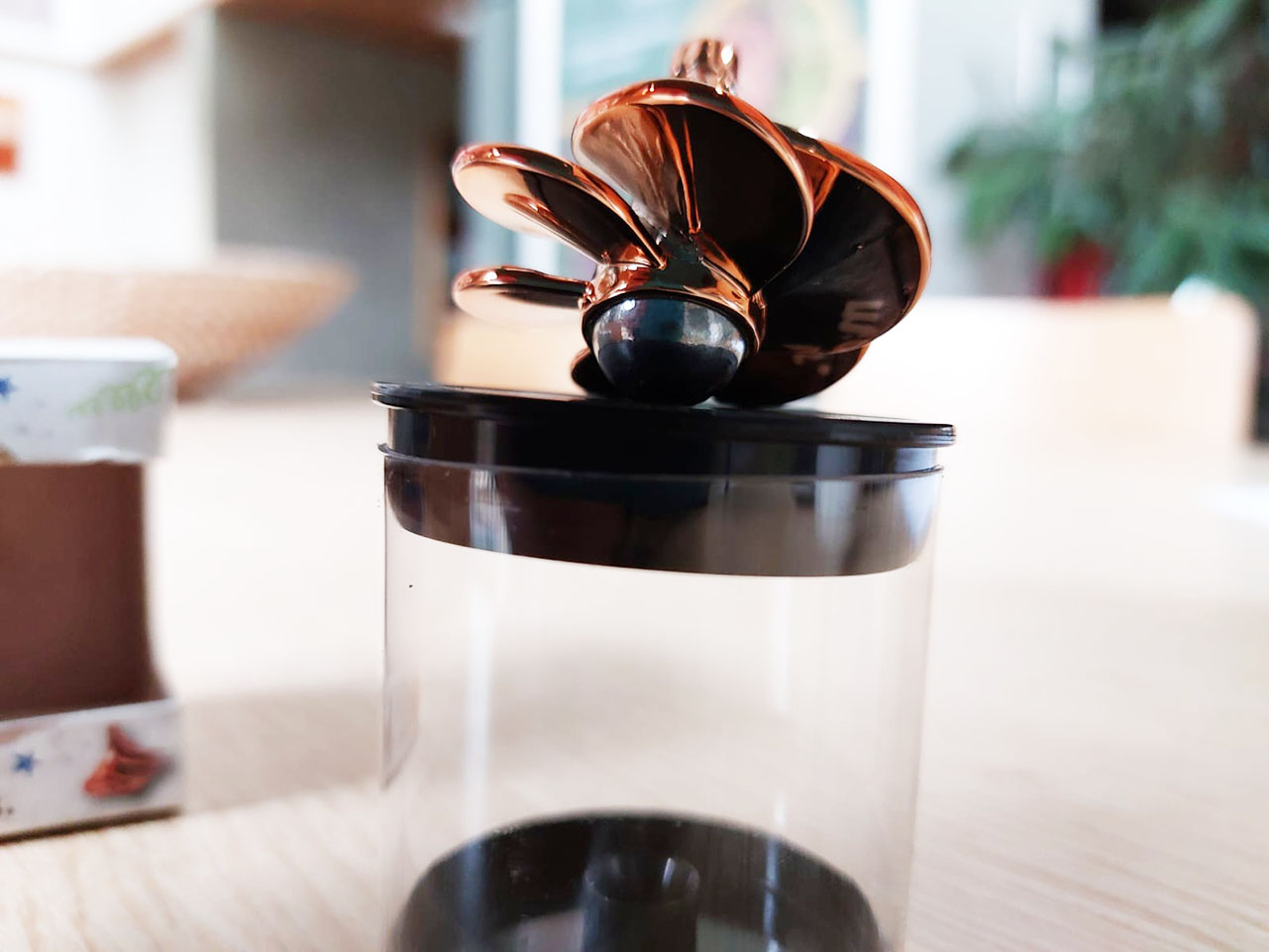 De magnetische kop wordt aangedreven door de tol, die door jouw adem in beweging komt.