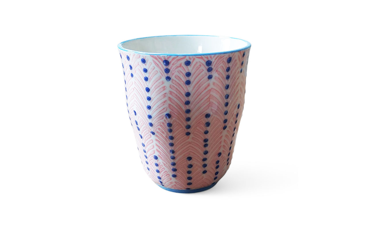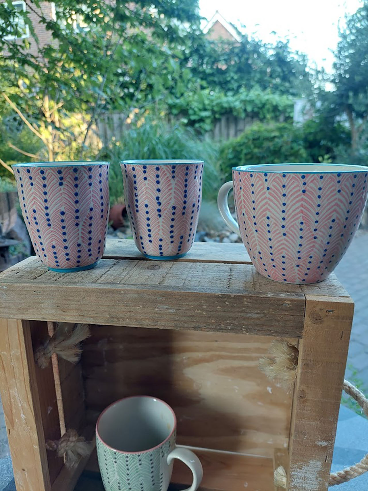 Deze mok in een hip design en een tijdloze uitstraling. Het met de hand gestempelde patroon ligt als reliëf op de mok. Dat is nog voelbaar ook!