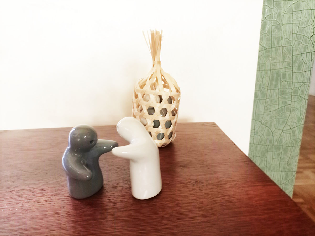De 2 figuren die elkaar omhelzen passen perfect in elkaar.
