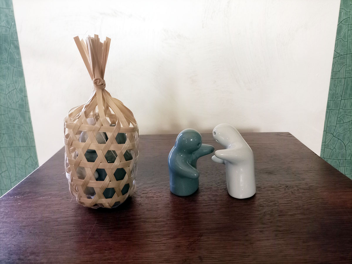 Dit koppel peper- en zoutstelletje wordt gemaakt in Noord-Thailand in een groot bedrijf. Voor Thaise begrippen een modern bedrijf met de naam Meelarp. In de fabriek werken 107 mannen en 183 vrouwen. Ze krijgen hetzelfde loon betaald. Naar gelang het aantal jaren in dienst wordt er een hoger loon betaald. De werktijden zijn van 08.00 tot 17.00 uur. Eventueel overwerk wordt goed betaald.