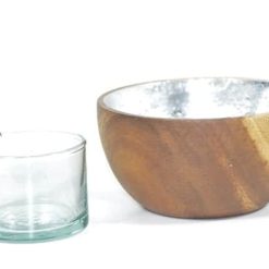 Bijzonder mooie waxinelichthouder. Geeft een warm sfeerlicht in de kamer. De warme kleur van het acaciahout wordt versterkt door het oplichtende bladzilver aan de binnenzijde.