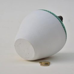 Een vrolijke spaarpot met een nostalgische feeling. Het is een échte spaarpot, en dat is het leuke van deze. Er is geen opening om het geld eruit te halen. Dat is dus echt de pot breken. Of geduldig ondersteboven schudden.