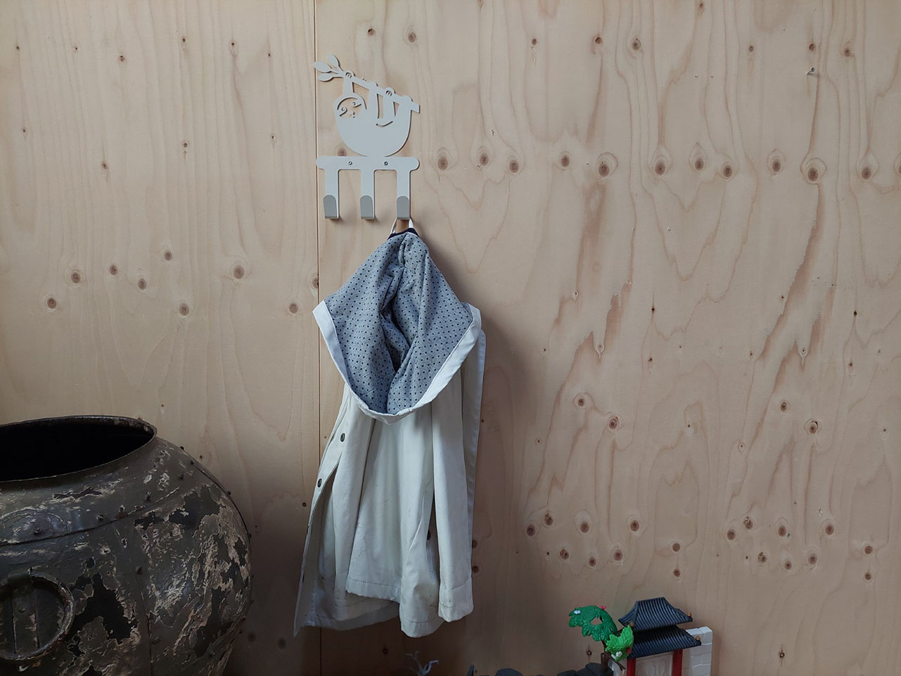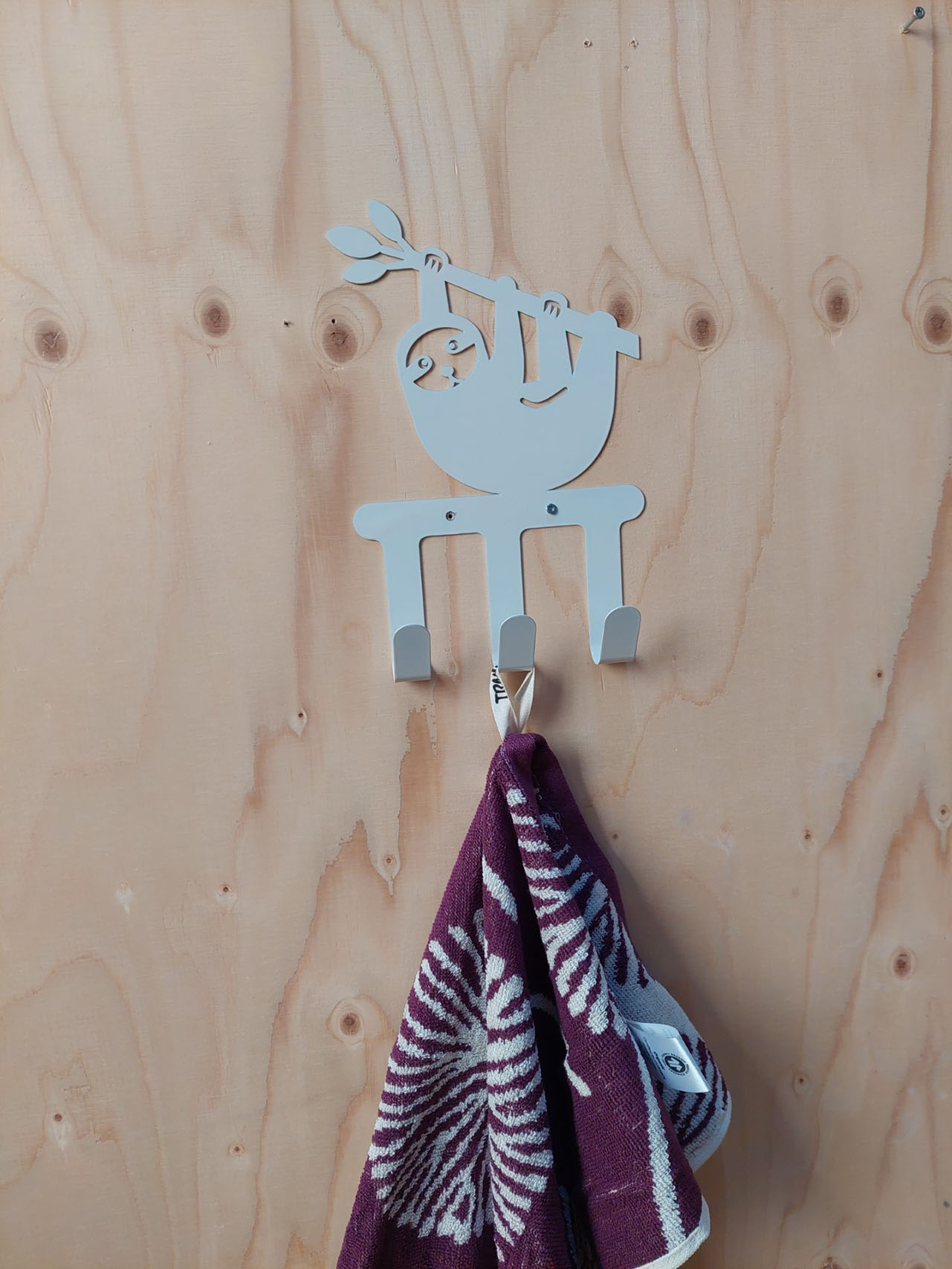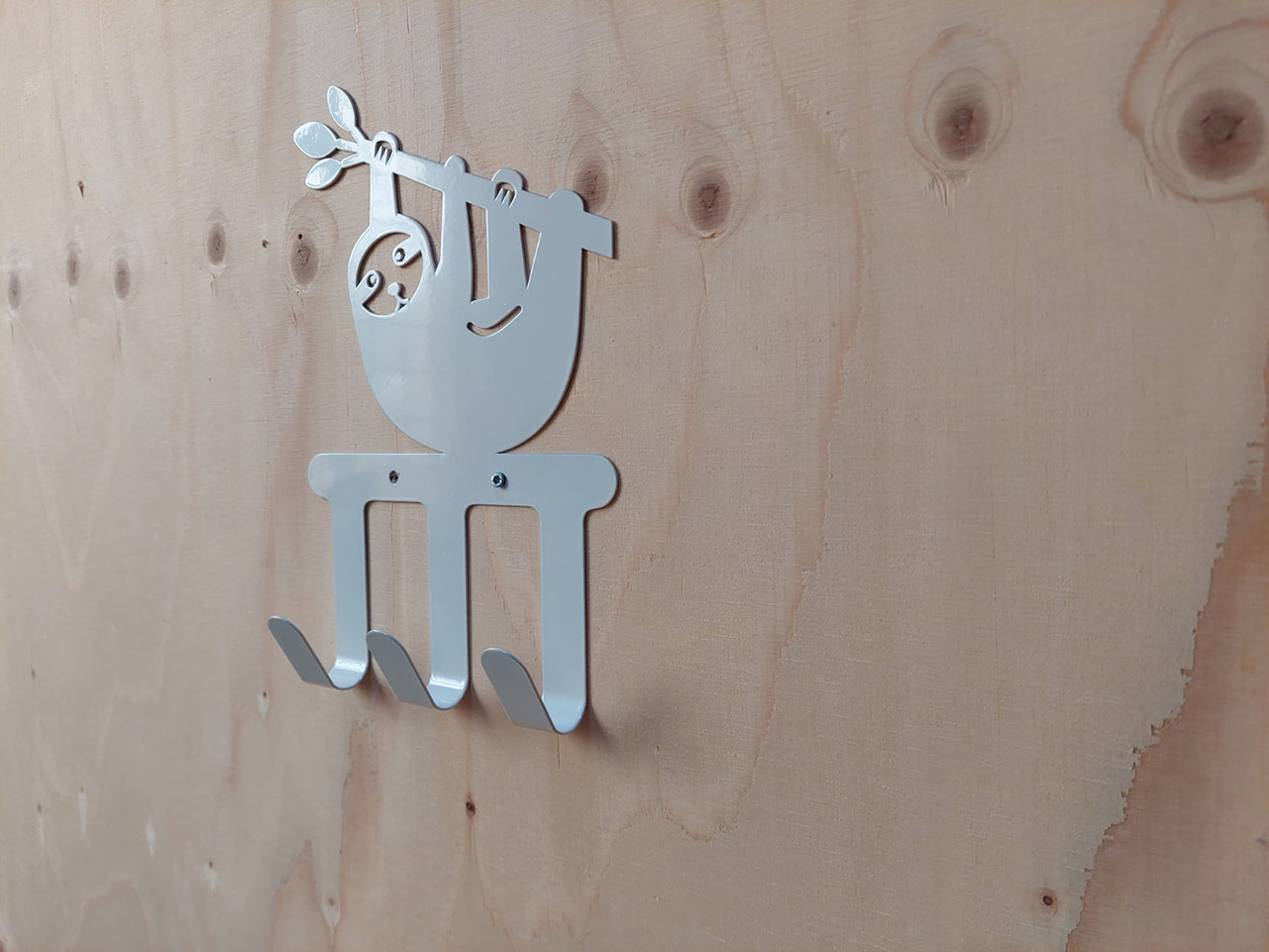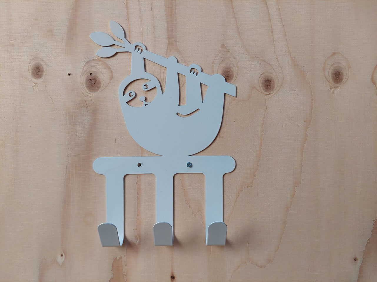 Stevige kapstok van metaal met een gaaf design van een luiaard. Ook goed te gebruiken in de hal voor de kinderjassen of tas.