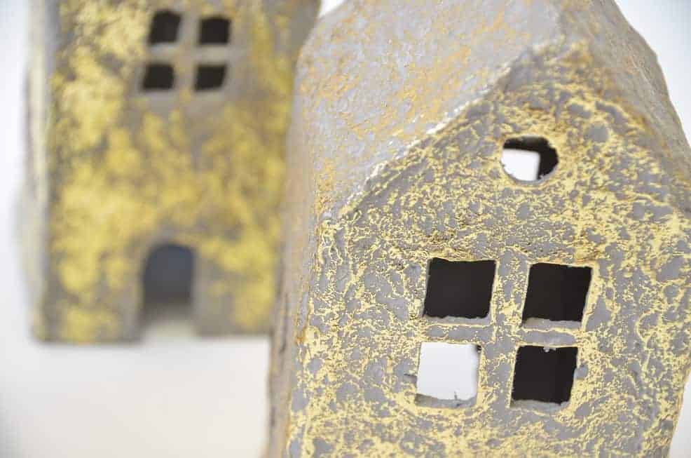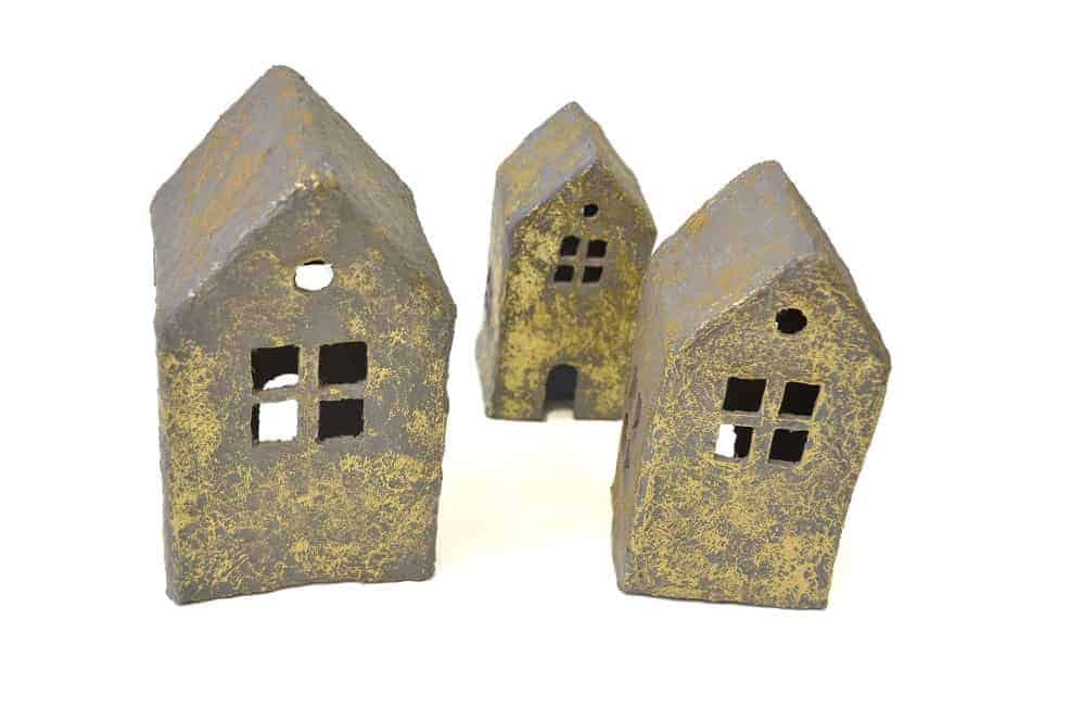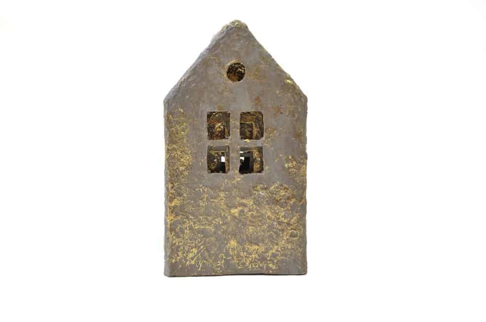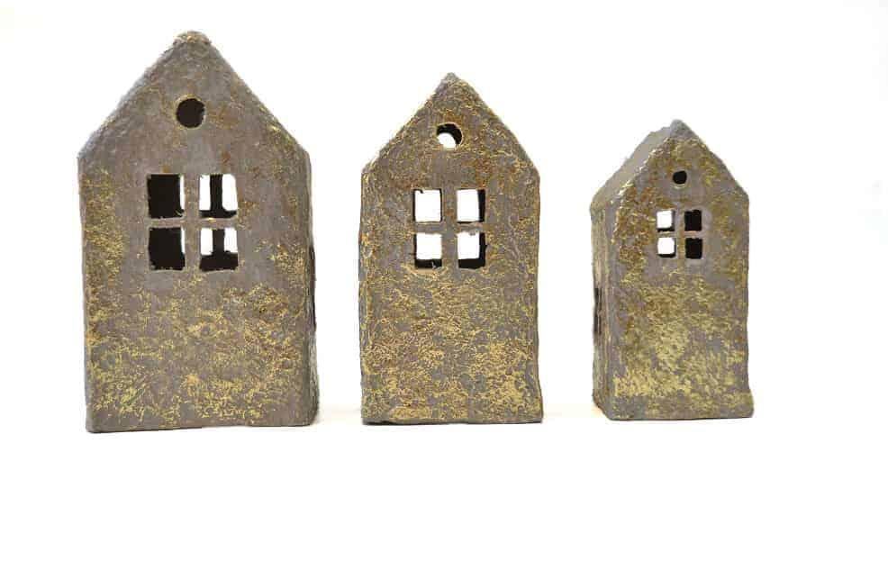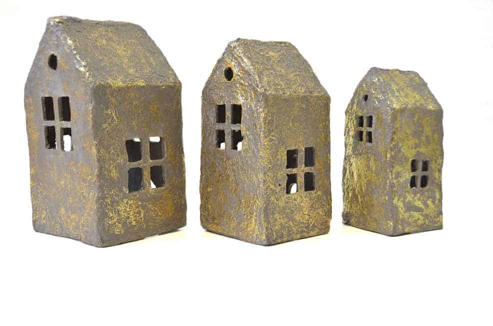 De huisjes zijn stevig en kunnen tegen een stootje. Ze zijn gemaakt in een warme grijze kleur en feestelijk afgewerkt met een gouden gloed.