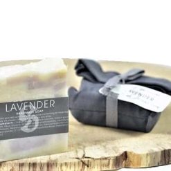 Een heerlijke zeep van lavendel in een katoenen zeepzakje. Ziet eruit als een cadeauverpakking.
