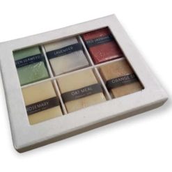 Een luxe geschenkset van 6 zeepjes. Van 100% plantaardige ingrediënten in de heerlijke geuren lavendel, black rice, red jasmine, rosemarijn, ananas en aloe vera.